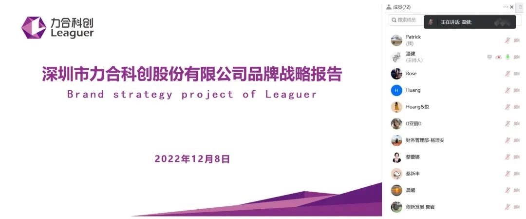 此次专题培训以线上形式举办,上市公司以及两大集团和50多家控股子公司将近80多人参加了专题培训会,接受专业化、系统化的品牌战略培训。本次培训会议由力合科创总经理助理王美华主持。培训会上,王美华介绍了力合科创品牌战略诞生的背景、意义,她表示,当前力合科创正式启用新版品牌战略,公司品牌宣传人员应以此次培训为契机,在开展品牌宣传的工作中,秉持“力合尚新,厚德致卓”的核心价值观,始终坚持让科技创新种子长成参天产业大树的使命,争做中国科技成果产业化的全能冠军。随后她从“品牌理念”、“品牌规范”、“品牌管理”几个维度深入浅出的对《力合科创品牌战略报告》进行了解读,全面介绍当前品牌战略内容体系、创新点以及相关实践意义。