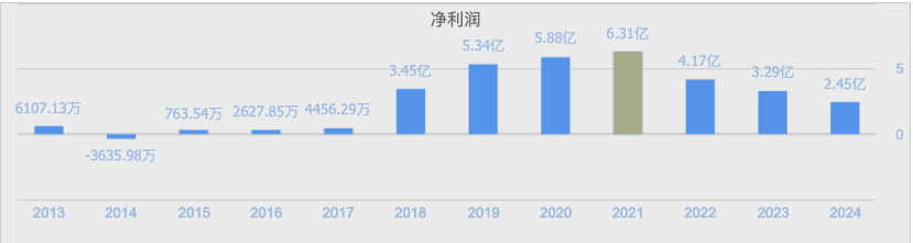 具体来看,2022年至2024年,力合科创实现营收分别为26.18亿元、25.16亿元、23.21亿元,同比增速为-12.99%、-3.90%、-7.75%,归母净利润分别为4.17亿元、3.29亿元、2.45亿元,同比增幅为-33.94%、-21.03%、-25.41%。