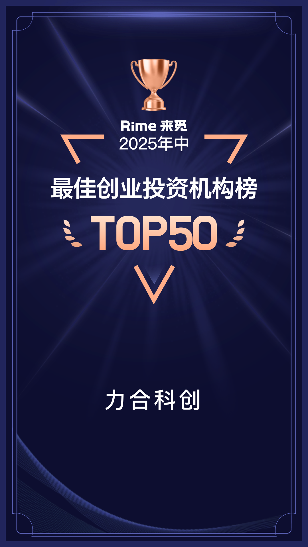 Rime来觅2025年中投资机构系列榜单盛大发布。力合科创成功入选“最佳创业投资机构榜TOP50”。