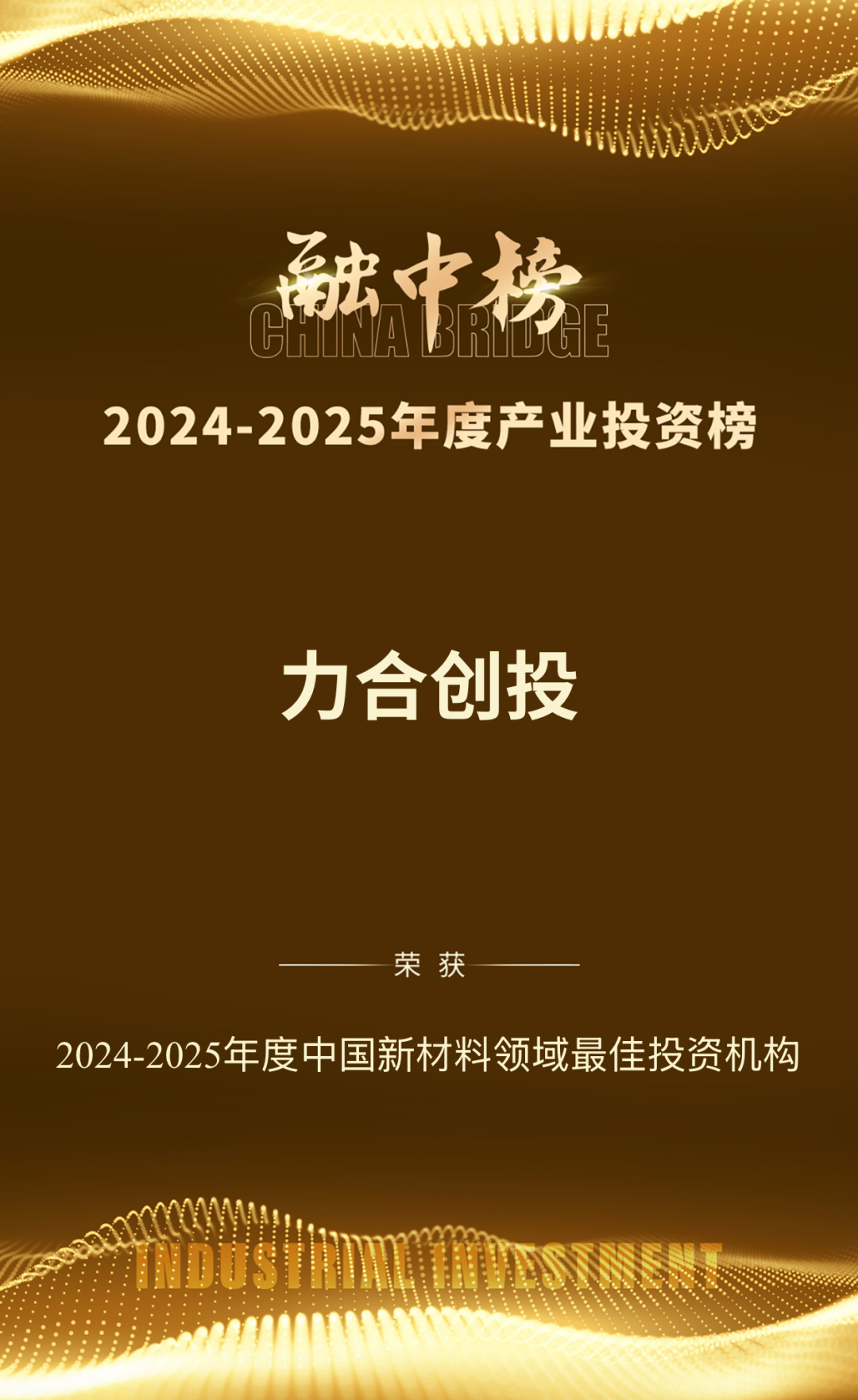 融中榜2024-2025年度产业投资榜重磅发布。力合创投荣获“2024-2025年度中国新材料领域最佳投资机构”。