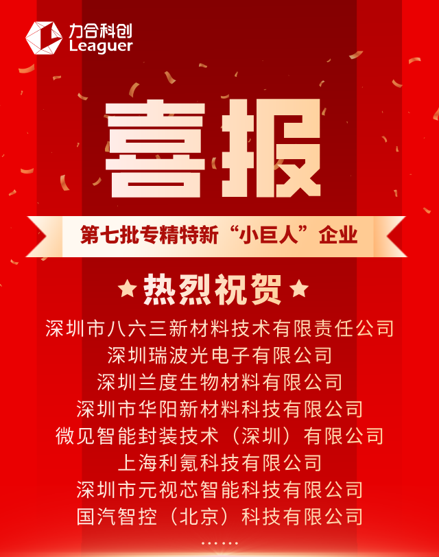近日,国家工业和信息化部公示了第七批国家级专精特新“小巨人”企业认定名单,力合科创子公司863检测,以及瑞波光电、兰度生物等多家投资孵化优秀企业凭借其在细分领域的创新实力与技术优势成功入选,彰显了力合科创在挖掘和培育硬科技企业方面的精准眼光与生态赋能价值。