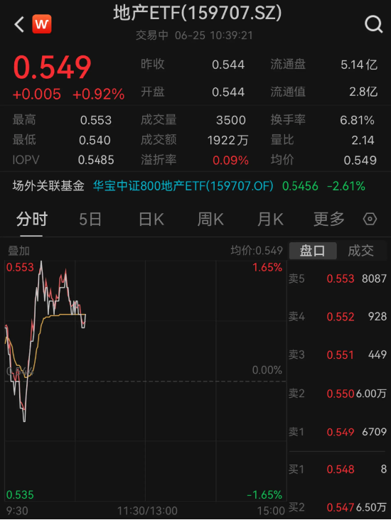 25日早盘,龙头地产震荡反弹,招商蛇口、滨江集团涨逾2%,华发股份、万科A、保利发展等多股涨超1%,新城控股、大悦城、海南机场、新湖中宝、上海临港等跟涨。代表A股龙头地产行情的地产ETF(159707)震荡反弹,场内价格盘中涨逾1%,实时成交额超1900万元。