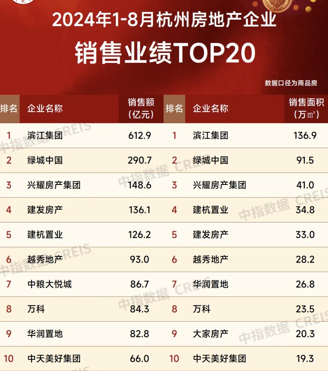 “固守杭州”是一直以来滨江集团坚持的战略。在去年年报中,公司强调区域布局上聚焦杭州、深耕浙江,浙江之外,重点关注上海市场。今年1—8月,滨江以销售额612亿元,稳居杭州房企第一,比第二名绿城多了300多亿元。