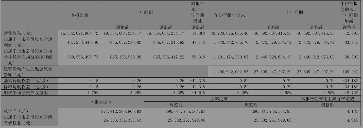 至今滨江尚没有发布业绩预告也没有发布年报,三季报披露,2024年前三季度营收407.84亿元,同比降12.09%;净利16.33亿元,同比降33.94%;扣非净利14.9亿元,同比降38.89%。三季报称,利润同比下降主要受交付体量较上年同期减少及交付项目本身毛利下降影响;现金流下降主要因公司维持较强的拿地力度,购买商品、接受劳务支出相对稳定,但报告期内资金回笼受销售同比下降、按揭首付比例下调,以及形象进度未结顶等按揭放款条件受限因素影响,与去年同期相比降幅较大。