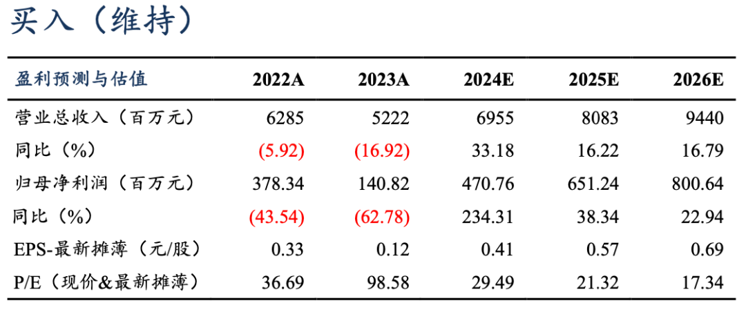 盈利预测与投资评级:考虑到下游需求持续向好,我们上修公司24-26年归母净利至4.7/6.5/8.0亿元(原预期4.0/6.0/6.9亿元),同比+234%/+38%/+23%,对应PE为29x/21x/17x,维持“买入”评级。