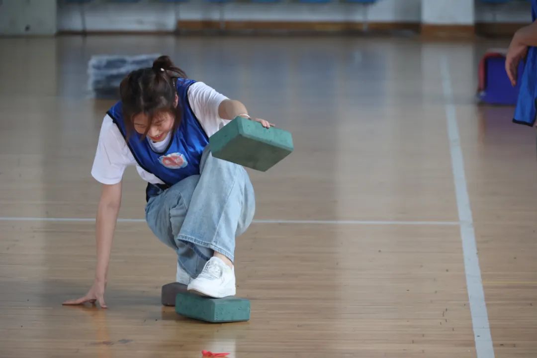 正赛活动前,工作人员随机将参与人员分为红、蓝、黄三队,在各自队长的带领下给自己的战队制定队名、确定口号、排练队形,团队组建完成后,随后开始正赛,正赛设有“同心协力”、“摸石过河”、“齐头并进”、“共缚苍龙”等项目的比拼。通过团队合作和协调能力的锻炼,提高大家的团队默契和凝聚力,三组队伍均顺利完成了比赛。