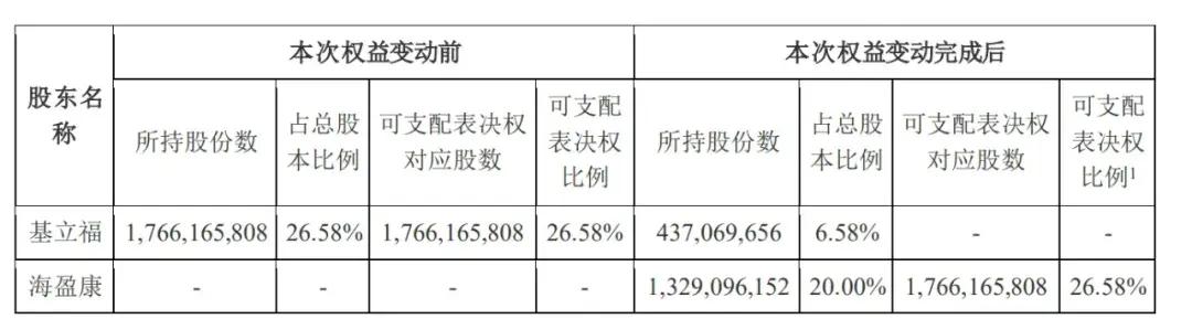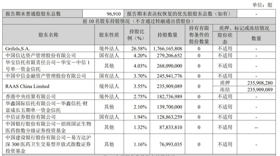 此次交易前,基立福(Grifols)持股为26.58%,中国信达资产管理股份有限公司持股为4.2%,华宝信托有限责任公司-华宝-中信 1号单一资金信托持股为4.03%,中国中信金融资产管理股份有限公司持股为3.7%,RAAS China Limited持股3.55%,香港中央结算有限公司持股2.75%;