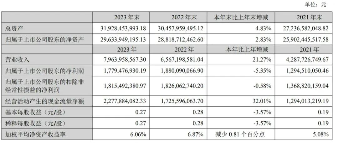 财报显示,上海莱士2023年营收为79.64亿元,较上年同期的65.67亿元增长21.27%;净利为17.79亿元,较上年同期的18.8亿元下降5.35%;扣非后净利为18.15亿元,较上年同期的18.26亿元下降0.58%。