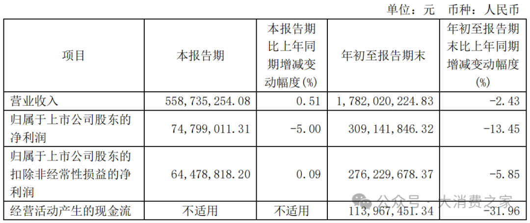 近两年则是收入和利润双降,2023年营业收入22.81亿元,同比下降了20.36%;归母净利润则4.06亿元,同比下降了32.41%。2024年前三季度延续了这种下滑的趋势,具体数据前文已述,营业收入同比下降2.43%,归母净利润同比下降13.45%。