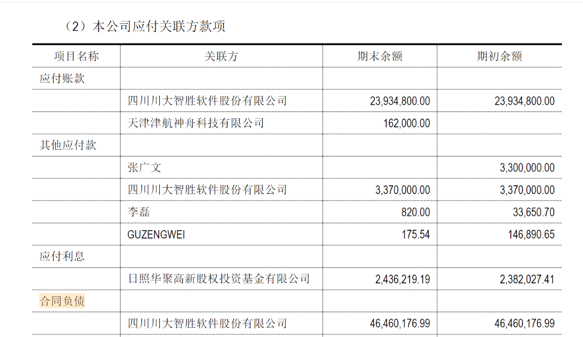 虽然川大智胜将该笔预付款转为了其他应收款,但是在华翼蓝天的年报上,该笔款项仍为合同负债,同时、华翼蓝天对该笔款项的确认金额与川大智胜的5,587万元有所不同,其具体金额为4,646.02万元。