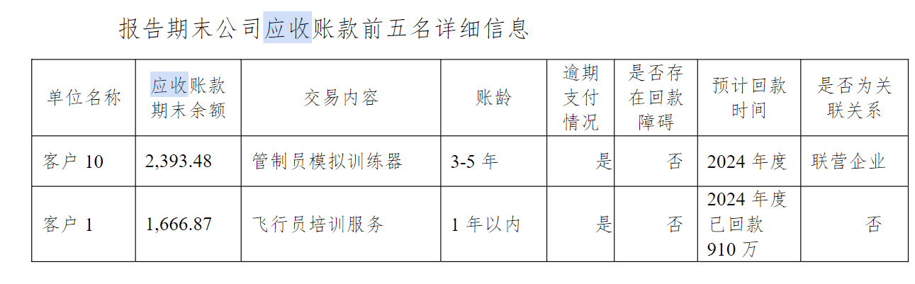 资料显示,2020年7月,公司与华翼蓝天签订“A320全任务飞行模拟机采购合同”,采购1台D级飞行模拟机,合同价格7,000万元。2020年8月至2021年3月,公司根据合同约定按付款节点支付款项,形成5,250万的预付款。