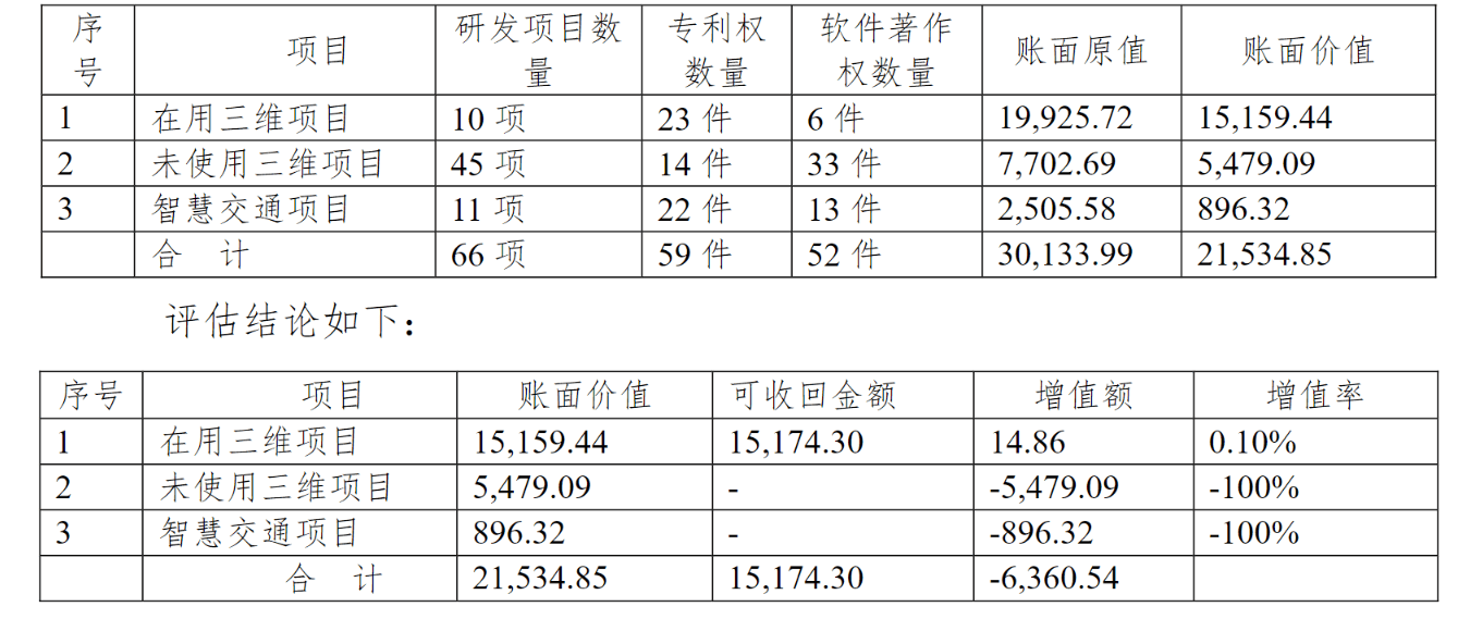 根据公告显示,2023年底,川大智胜针对发生减值迹象的三维技术和智能交通技术2类无形资产进行了减值测试。减值结果显示,川大智胜的未使用的三维项目与智慧交通项目被全额计提减值损失。