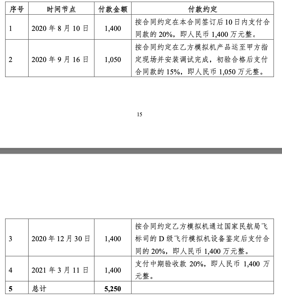 按照川大智胜的说法,2020年7月,公司与华翼蓝天签订了一份“A320全任务飞行模拟机采购合同”,向其采购1台D级飞行模拟机,合同金额7000万元。此后至2021年3月,公司陆续支付了合计5250万元的预付款。