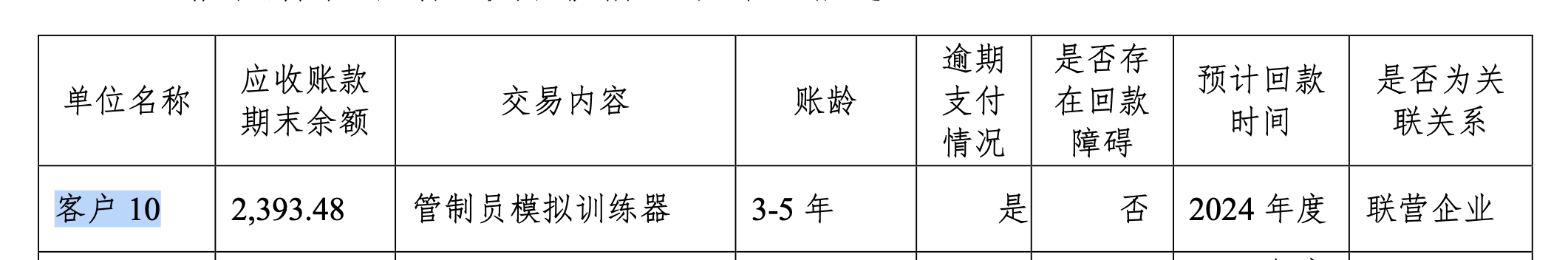 事实上,上述5587万元并不是华翼蓝天对川大智胜的全部债务。近年来,华翼蓝天还向川大智胜采购材料等,截至去年末,川大智胜对华翼蓝天的应收款期末余额为2393.48万元。通过金额及信息比对来看,华翼蓝天或正是川大智胜在年报问询回复中所披露的去年末第一大应收款方客户10(与川大智胜关系为联营企业),这笔应收款账龄已有3—5年,支付已逾期,预计回款时间是今年。