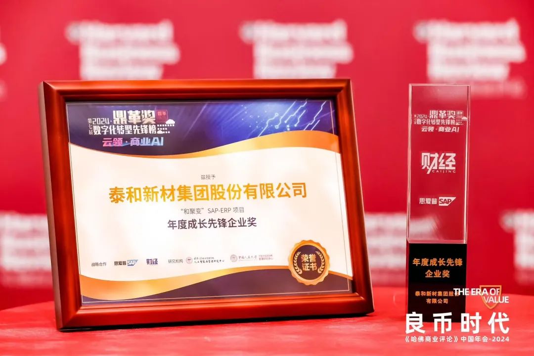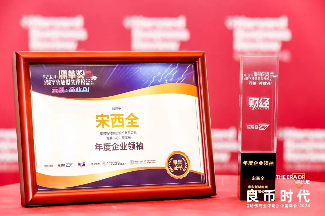 10月30日,“2024·「鼎革奖」数字化转型先锋榜”评选结果揭晓,泰和新材荣获年度成长先锋企业奖,泰和新材党委书记、董事长宋西全荣获年度企业领袖。