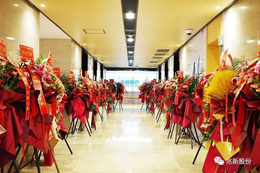 (乔迁庆典当天,合作伙伴纷纷送上花篮和祝福)