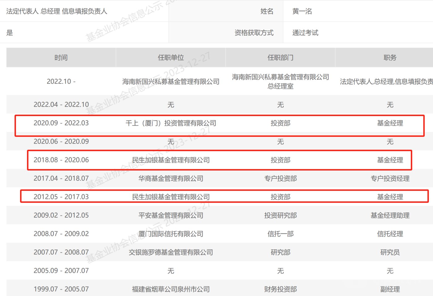 比起不知名的新国兴创投,其背后的操盘者黄一洺在资本市场却小有名气。据悉,黄一洺此前在公募行业从业多年,在交银施罗德、平安基金、民生加银和华商基金等多家公募基金都有过工作经历。不过,曾因在民生加银基金管理的产品换手率超过3000%和牛市业绩垫底而备受争议。