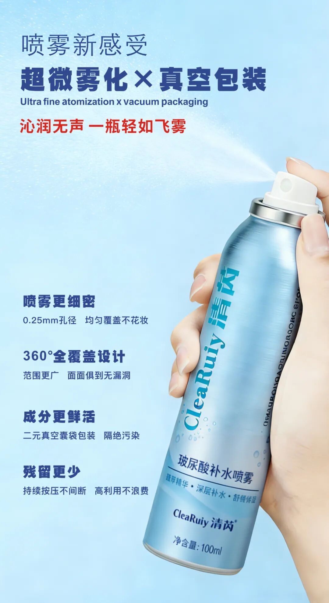 在生产工艺上,我们延续了精细化工领域的严苛标准,采用二元安全包装和无菌灌装技术,确保产品从研发到出厂的每一个环节都安全可控。相较于传统补水产品,清芮玻尿酸补水喷雾更注重肤感的优化,细腻的喷雾质地可快速渗透肌肤,深层锁水保湿,适配多种场景使用——晨起唤醒肌肤、妆前补水打底、午后舒缓干燥、运动后修护保湿……全方位满足消费者的多元化补水需求。