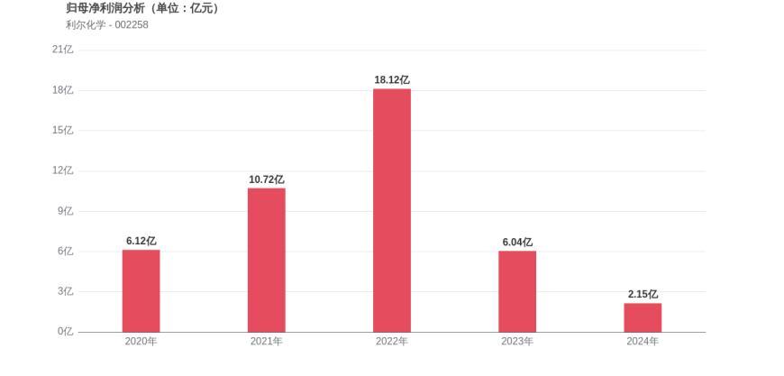 利润角度分析,2020年利尔化学实现归母净利润6.12亿元,2024年2.15亿元。公司盈利能力在2022年达到峰值后大幅回落。
