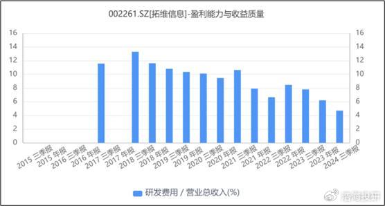 不到5000万的利息对别人也许没什么,但对于盈利空间不断下滑的拓维,无疑又是一大业绩压力。2024年前三季度,在管理和研发投入均收紧的状态下,拓维的销售净利率仅为0.10%。