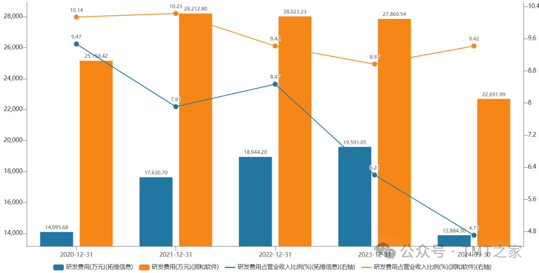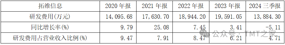 研发能力是高科技企业技术创新和可持续发展的根基。然而,从近年来拓维信息的研发投入来看,其研发能力正在不断弱化。