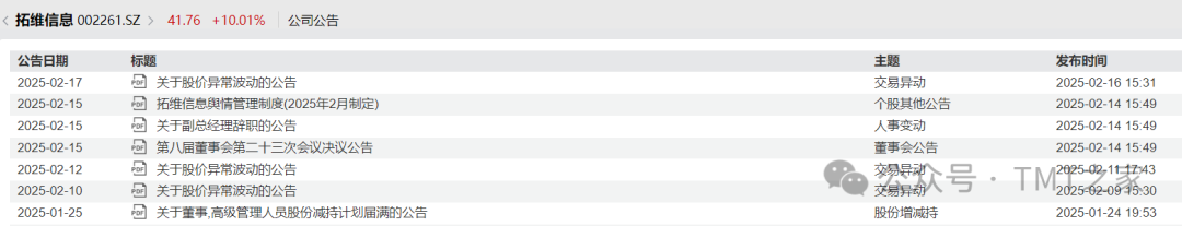 截至2月24日上午收盘,拓维信息股价上涨1.70%,报收42.47元/股。自2月5日以来,其股价从18.13元/股飙升至42.47元/股,短短时间实现了230%涨幅。市场热度持续攀升,公司已发布三次股价异常波动的公告,强调公司近期生产经营情况正常,内外部经营环境未发生重大变化,未发现前期披露的信息存在需要更正、补充之处。