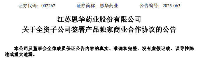 此外,恩华药业需要一次性支付 2000 万美元不可退还的授权对价,并承诺将在 2026 年至 2035 年期间,完成合作产品总计不低于 27 亿元人民币的含税销售额。