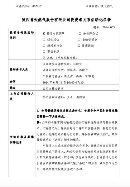 陕西省天然气股份有限公司(以下简称“陕天然气”或“公司”)6月19日发布公告称,公司于6月14日接受了国泰君安、开源证券、平安养老基金的特定对象调研。在调研中,陕天然气透露,2022年,国际LNG原料气价格达近几年高峰,2023年随着国际LNG原料气价格大幅下降,可中断用户销售单价下降引起公司平均销气毛利单价较2022年同期减少,致使2023年利润较2022年度减少。如果剔除掉可中断用户的影响,公司的核心业务利润是增长的。