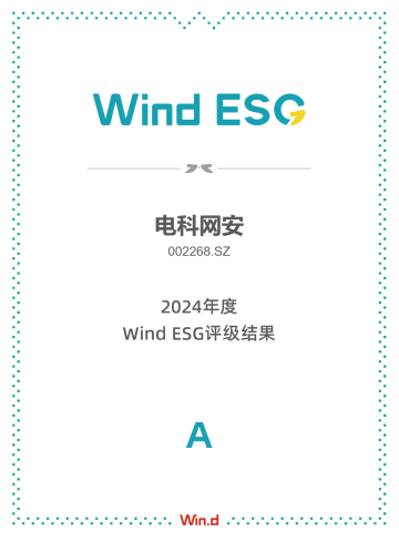 近日,在万得(Wind)最新发布的ESG评级中,电科网安凭借良好的ESG管理实践和信息披露,在万得241家同行企业中脱颖而出,位列第18名,评级由BBB级提升至A级。公司在环境、治理及社会方面的得分均高于行业均值,获得了评级机构的认可,体现了在可持续发展领域的成效及作为国有企业的责任与担当。