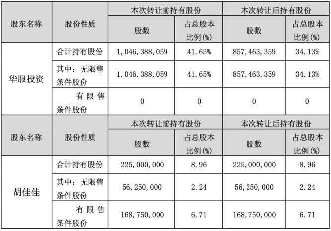 公告显示,华服投资成立于2007年,主营实业投资、投资管理等,法定代表人为周成建,与胡佳佳系父女关系,根据《上市公司收购管理办法》规定,胡佳佳与控股股东华服投资为一致行动人。