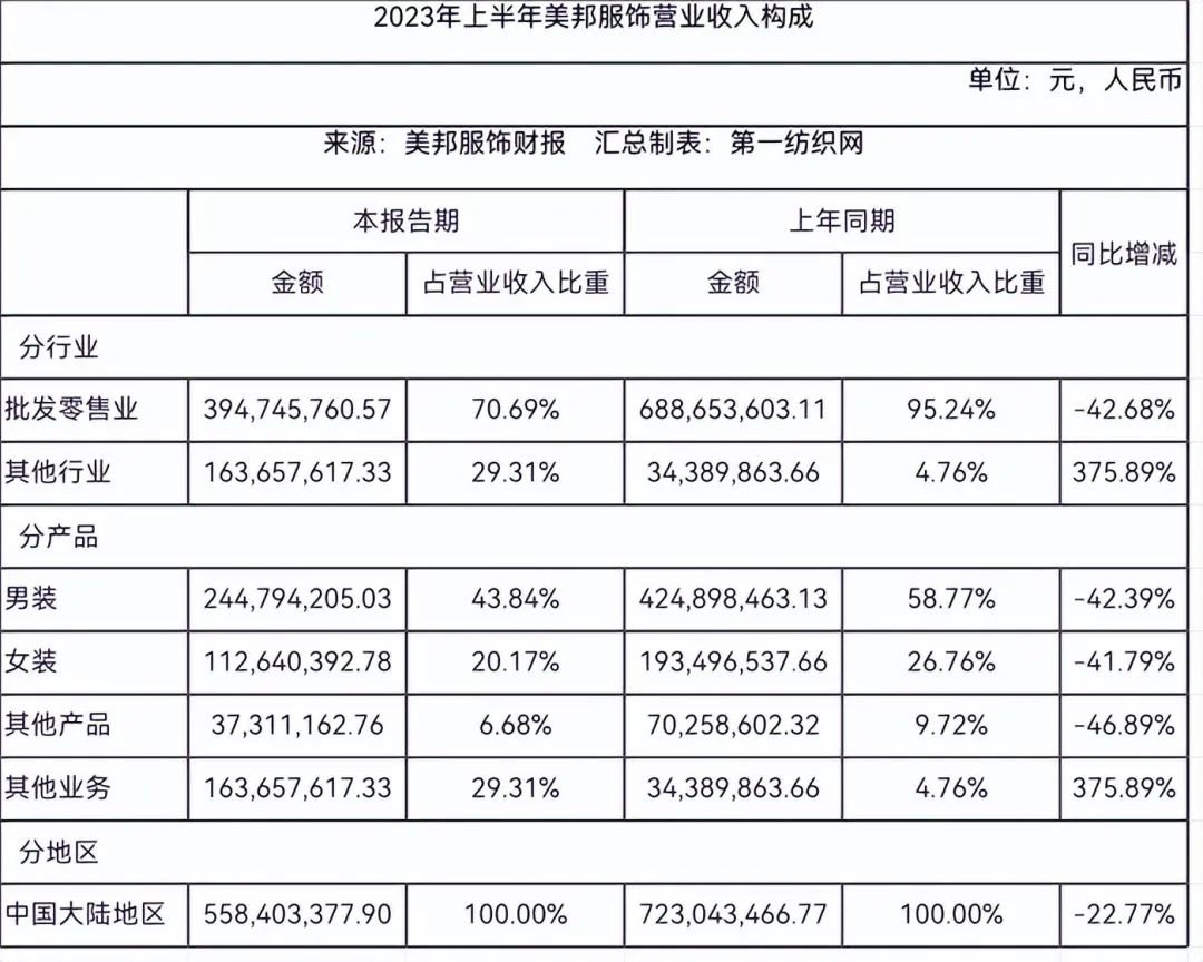 作为知名休闲装品牌,美邦服饰于2008年在深交所上市,2011年,美邦服饰营收约99.45亿元,归属于上市公司股东的净利润约12.1亿元,但从2014年开始至今,美邦服饰归属于母公司的净利润合计接近34亿元,不过,来自美邦服饰的财报显示,进入2023年以来,美邦服饰经营状况有所好转,2023年上半年,公司实现营业收入约5.58亿元,同比减少22.77%;归属于上市公司股东的净利润约1026万元,同比扭亏为盈;2023年前三季度,美邦服饰营收约8.37亿元,同比减少13.49%;归属于上市公司股东的净利润约4164万元,同比增加105.48%。