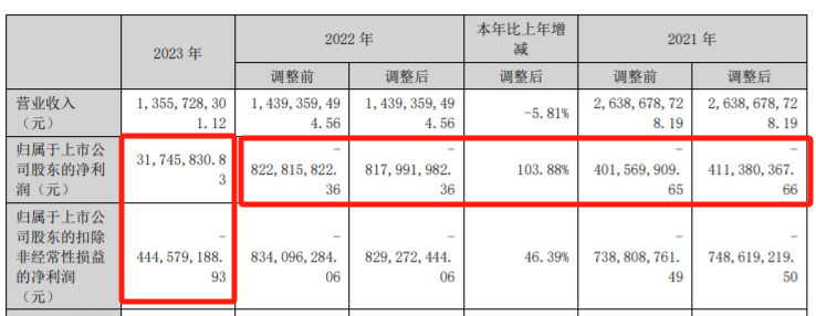 针对2023年度归母净利润,美邦服饰1月30日披露业绩预告,预计为5900万元至8500万元,4月20日修正为2600万元至3800万元,4月30日披露2023年年报显示为3175万元。