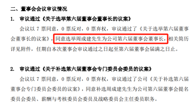 1月22日,美邦服饰董事会审议通过议案,同意选举周成建为公司第六届董事会董事长,并且聘任周成建为公司总裁。