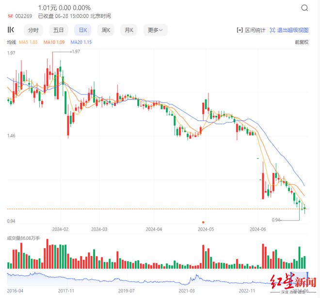 不过,该回购计划并未能明显拉高公司股价。6月26日,美邦服饰一度跌至0.94元/股。