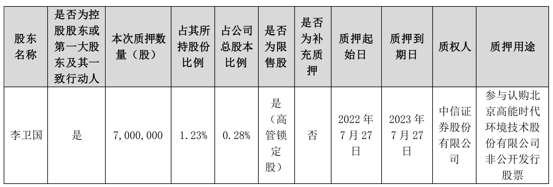 公告显示,东方雨虹近日接到公司控股股东、实际控制人李卫国函告,获悉李卫国所持有东方雨虹的700万股股份被质押,占东方雨虹总股本比例为0.28%。