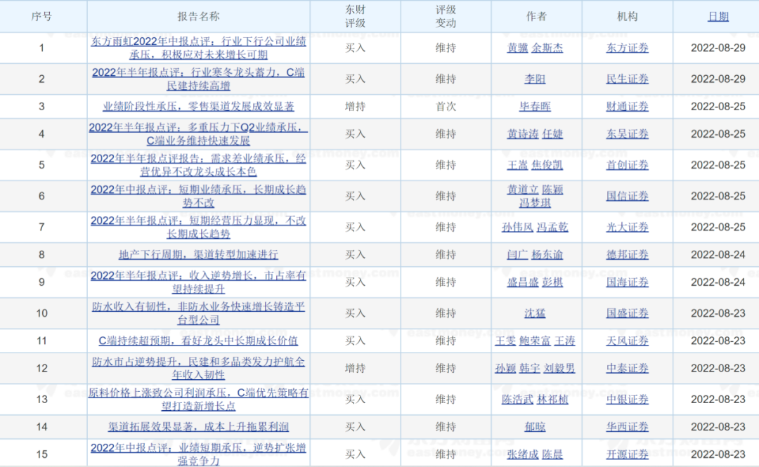在东方雨虹8月22日发布半年报之后,新一轮的股价下跌已经形成,但一些券商还在一个劲看好。