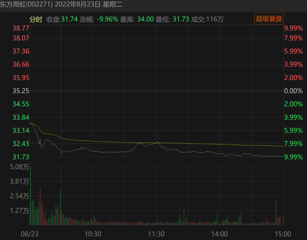 23日,东方雨虹大幅跳空低开,并以跌停收盘。全天37.4亿元的成交额,创公司单日成交额的历史之最。