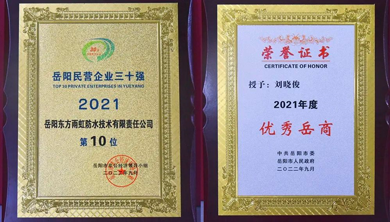 9月16日,岳阳市民营经济统战工作会议暨民营经济高质量发展大会在岳阳市会展中心举行。岳阳东方雨虹上榜2021年度“岳阳市民营企业30强”榜单,岳阳东方雨虹总经理刘晓俊荣获2021年度“优秀岳商”称号。