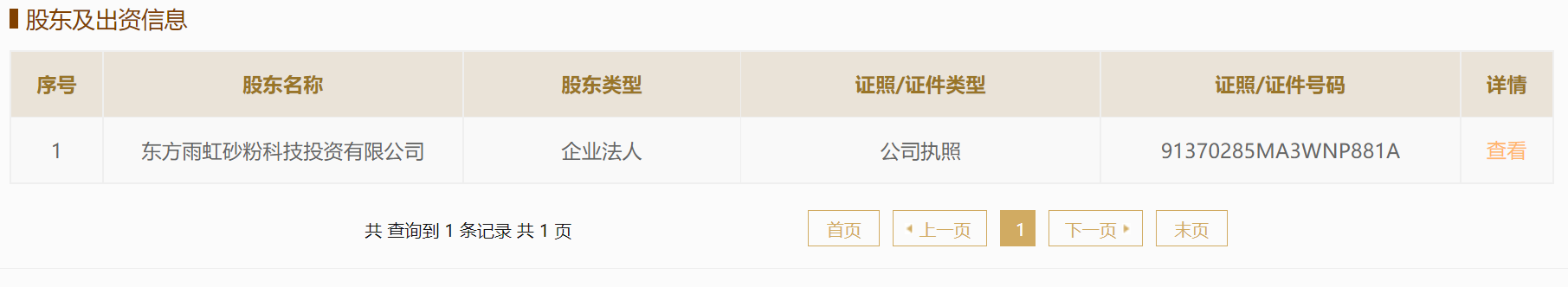 重庆东方雨虹砂粉科技有限公司成立于2019年9月26日,法定代表人为吴良凯,注册资本为1000万元,经营范围为轻质建筑材料制造;新型建筑材料制造(不含危险化学品)等。该公司此前由东方雨虹持股100%,目前由东方雨虹砂粉科技投资有限公司持股100%。