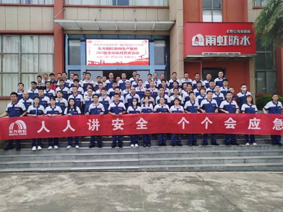 安全关乎每一个生命主体,为增强全体员工安全意识,夯实安全环保管理基础,东方雨虹坚持在每年六月面向全国工厂组织开展“安全环保月”主题活动,一方面响应全国“安全生产月”的活动号召,对安全生产理念进行全面宣贯;另一方面通过系列活动聚焦专项安全检查,消除安全隐患,并通过应急演习检验改进成果,积极深入群众,开展“人人都是安全员”、环保评比等活动,将安全、环保和职业健康工作落实到每个角落。