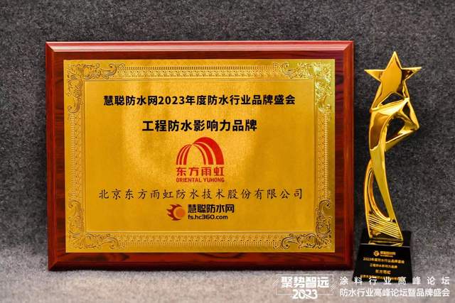 作为行业卓越的品牌典范,秉持创新驱动,坚持高质量、可持续、品牌化发展的东方雨虹成功荣获“工程防水影响力品牌”“防水卷材影响力品牌”“高分子防水卷材影响力品牌”“聚氨酯防水涂料”“家装防水影响力品牌”五大奖项,用实力彰显了东方雨虹在防水领域的品牌影响力。