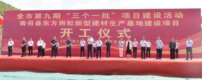 近日,南阳市第九期“三个一批”项目建设活动(南召县分会场)开工仪式,在南召县东方雨虹新型建材生产基地举行。