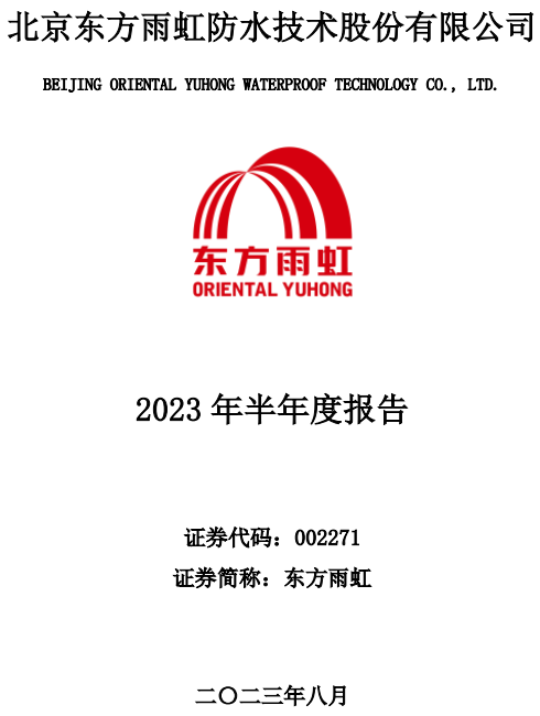东方雨虹发布2023半年报