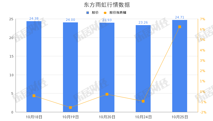 截至10月25日,东方雨虹(002271.SZ)股价收盘23.26元,涨6.23%,成交总额17.99亿元,总市值622.31亿元。
