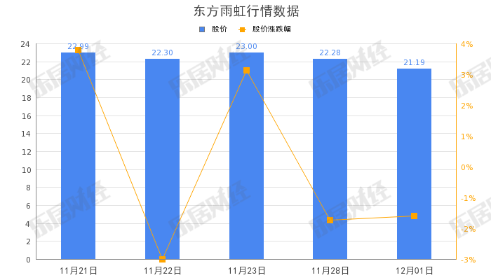 截至12月01日,东方雨虹(002271.SZ)股价收盘报21.53元,跌1.58%,总市值533.66亿元。