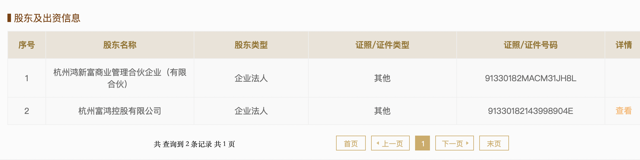 杭州富鸿控股成立于1995年2月27日,注册资本3000万元,法人代表为程闪。目前,其大股东为程闪,持股99.9%。