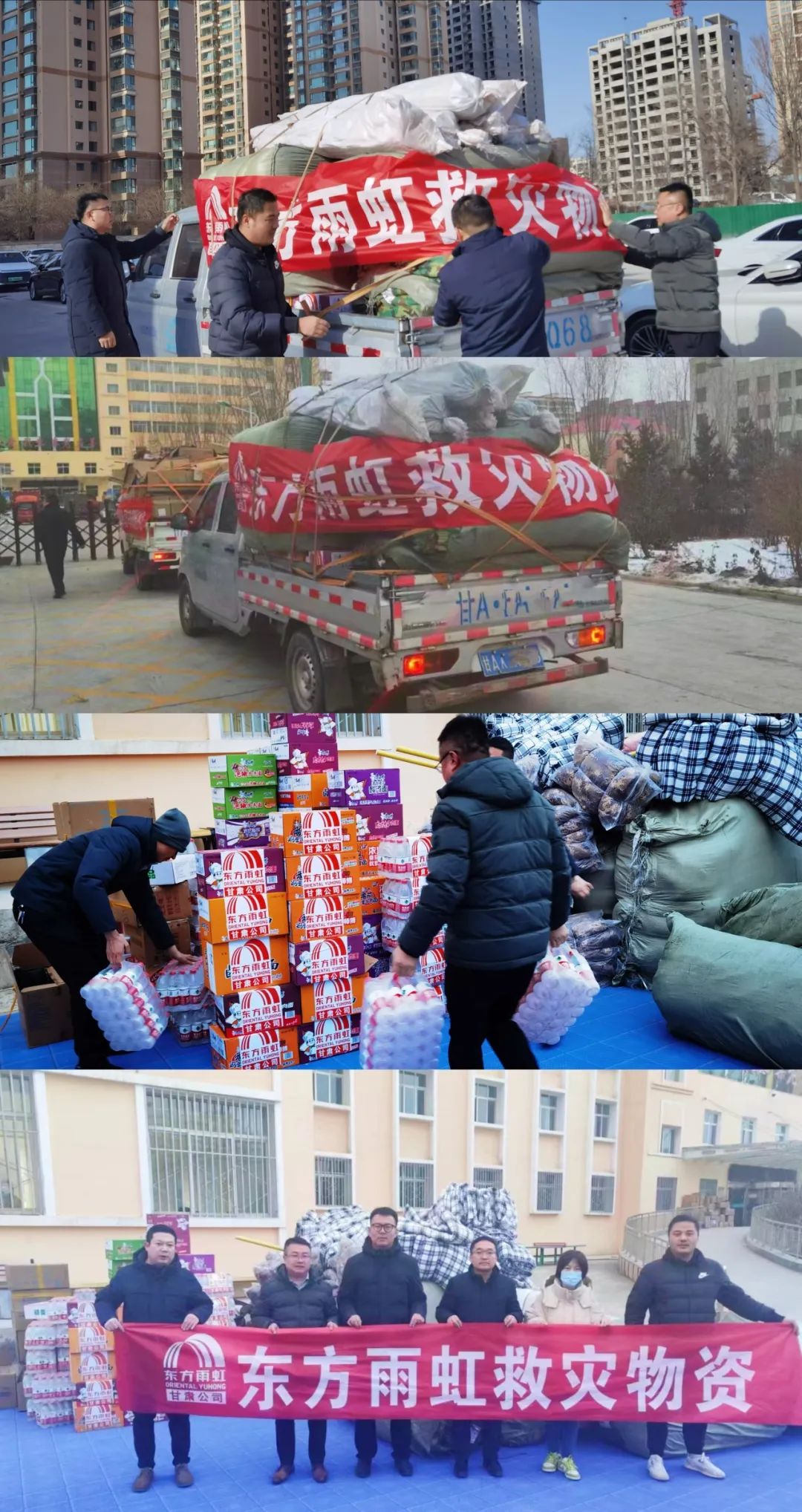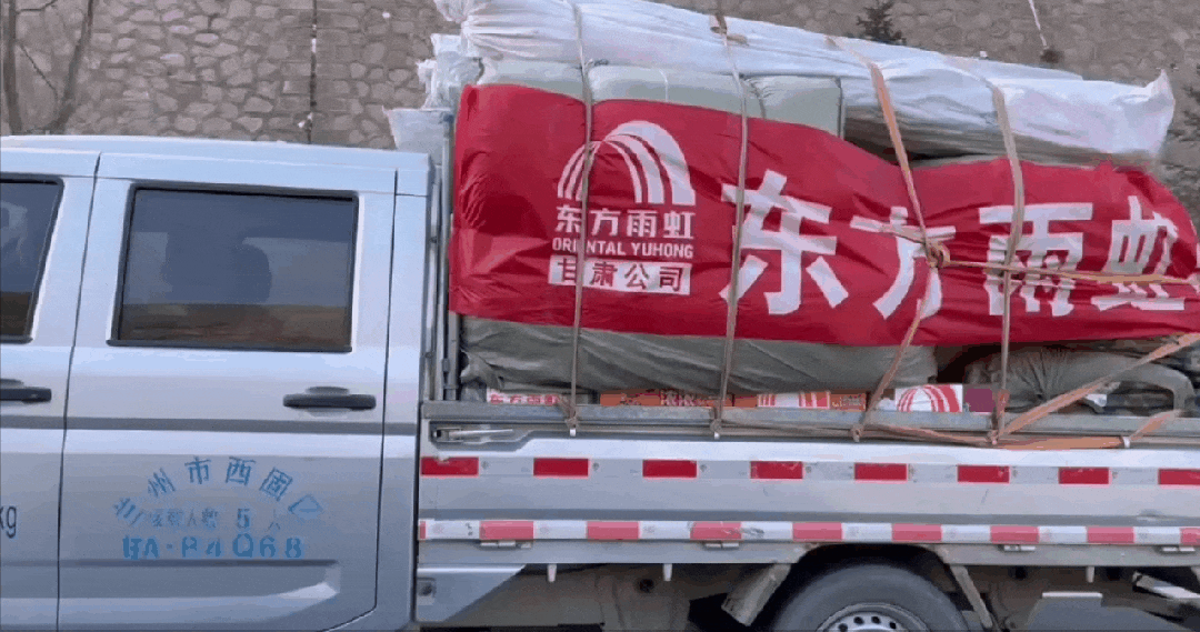 救援行动,刻不容缓。灾情发生后,东方雨虹甘肃公司迅速与积石山县红十字会取得联系,了解灾情和救灾救援需求,并紧急筹备帐篷、棉被、食品、饮用水等救灾物资,调配相关人员及运输车辆。经过4小时驱车跋涉,于19日18时顺利将所有物资运送至积石山县综合社会福利院,为灾区人民送去温暖和力量,携手受灾地区和群众共渡难关。
