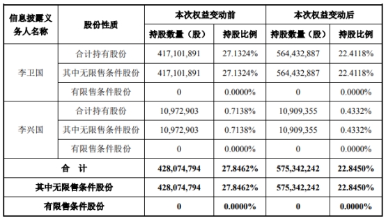 东方雨虹昨晚公告显示,李卫国于2024年2月5日通过二级市场大宗交易方式减持690万股公司股份,本次减持完成后,李卫国及其一致行动人李兴国合计持股比例由23.1189%变为22.8450%,减持所得资金将用于履行公司2021年员工持股计划兜底补足承诺。