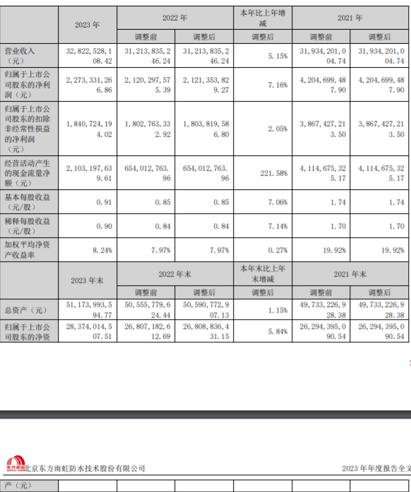 4月18日,东方雨虹(SZ002271)发布2023年年度报告。