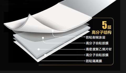 此次推出的全新JY89非砂面背粘型高分子自粘胶膜防水卷材,以特制高性能聚乙烯片材为核心防水基材,上表面覆高分子自粘胶,其上覆防粘耐候涂层,下表面覆高分子自粘胶及防粘隔离膜。此外,卷材上表面长边一侧预留80mm宽自粘搭接边,便于预铺反粘法施工。